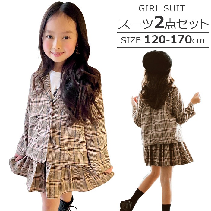 正午まで当日発送(土日祝除く) 女の子 スーツ アンサンブル フォーマル 2点セット 小学生 子供服 120cm 130cm 1...