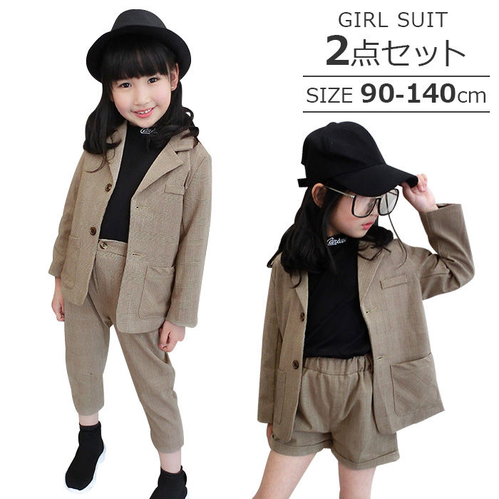取寄せ納期約2~3週間 女の子 スーツ 2点セット ジャケット/パンツ 2ピース スーツセット フォーマル ショートパンツとロング...