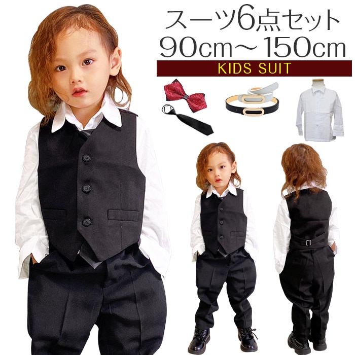 営業日は12時まで当日発送 子供スーツ 6点セット ベスト/パンツ/Yシャツ/ネクタイ/蝶ネクタイ/ベルト 男の子 女の子 キッズ...