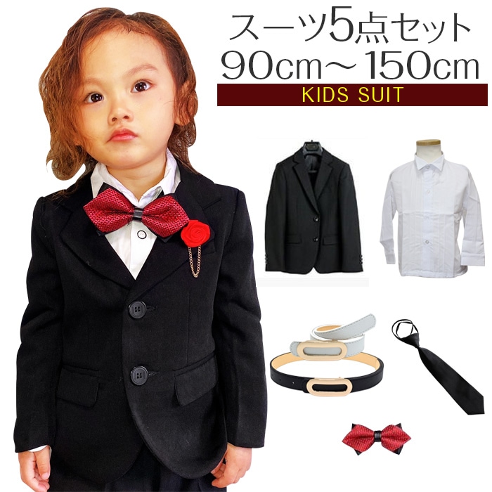 営業日は12時まで当日発送 子供スーツ ジャケット 5点セット ジャケット/Yシャツ/ネクタイ/蝶ネクタイ/ベルト 男の子 女の子...
