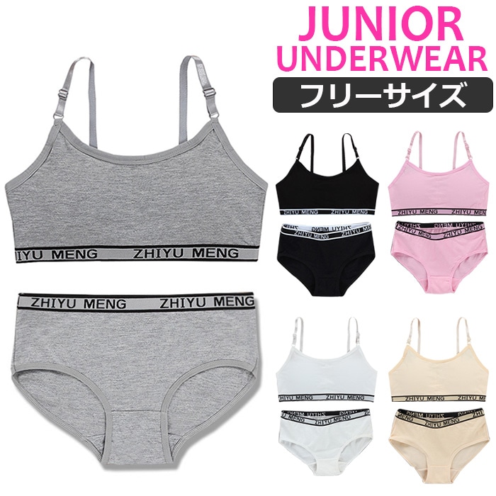 正午まで当日発送(土日祝除く)【訳あり】ジュニア向け 下着 上下セット 肩ひも調整式 スポーツブラとショーツの2点セット カップ付...