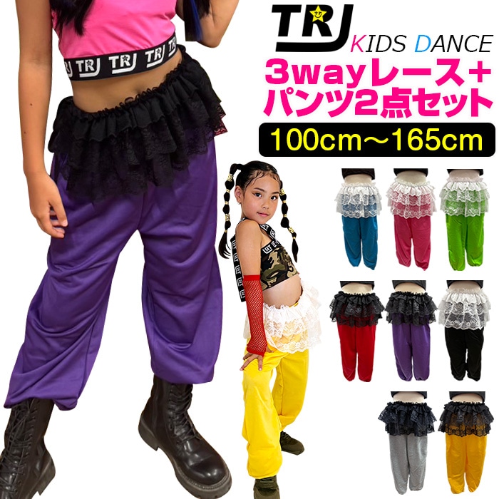 正午まで当日発送(土日祝除く)ダンス2点セット 3wayレースとカラーパンツ キッズ 女の子 ダンス衣装 100cm~165cm ...
