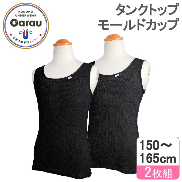 【女の子】モールドカップ付きタンクトップ ブラトップ 2枚組 150~165cm 胸二重【吸水速乾】