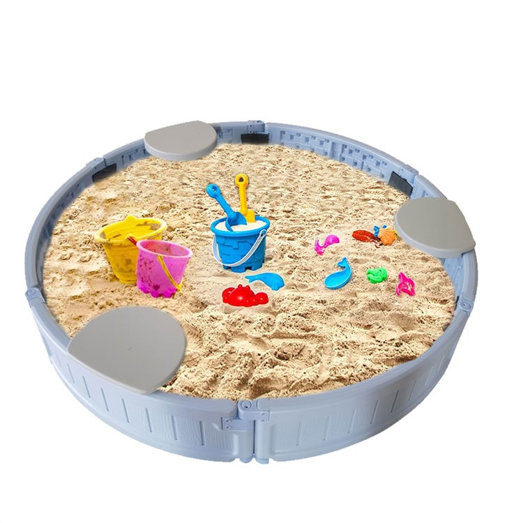 砂場 蓋付き サンドボックス 砂場枠 カバー シート ブルー 丸形 プラスチック製 120x120x20cm 家庭用 大型遊具 す...