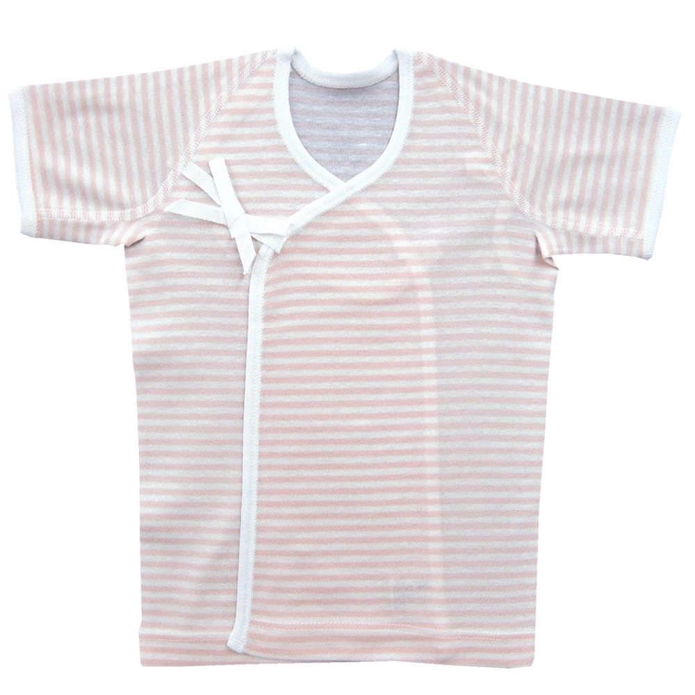 【新生児】 フライス短肌着:ボーダーピンク 【サイズ50】