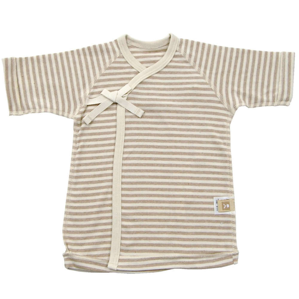 【新生児】 オーガニック短肌着 ボーダー 【サイズ50】:ブラウン
