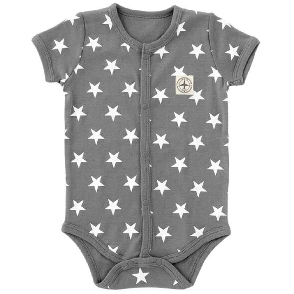 【新生児】 星柄半袖ロンパース:グレー 【サイズ60】