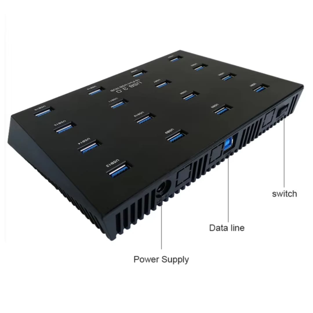 USB3.0対応 16ポートハブ A-163 高速転送&電源付き