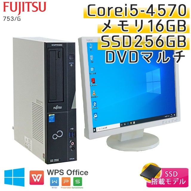 中古パソコン富士通 ESPRIMO D753/G Windows10 Corei5-3.2Ghz メモリ16GB SSD256GB...