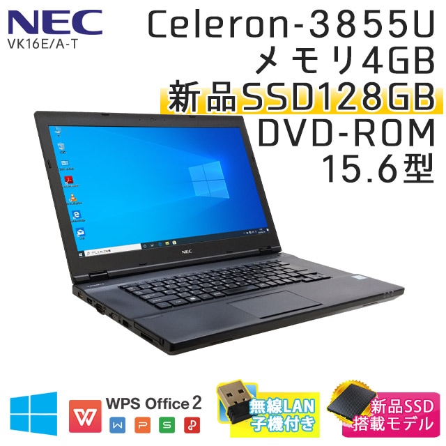 【新品SSD搭載】 中古ノートパソコン NEC VersaPro VK16E/A-T Windows10Pro Celeron-1...