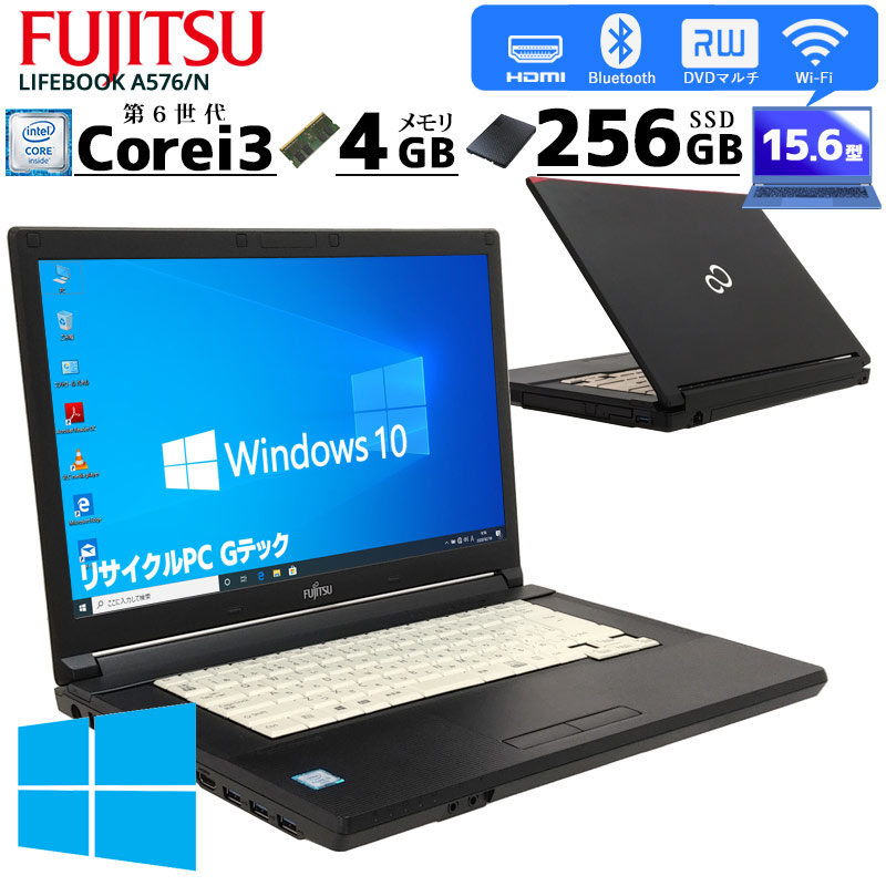 [新品SSD搭載] 中古ノートパソコン 富士通 LIFEBOOK A576/N Windows10Pro Core i3 6100...