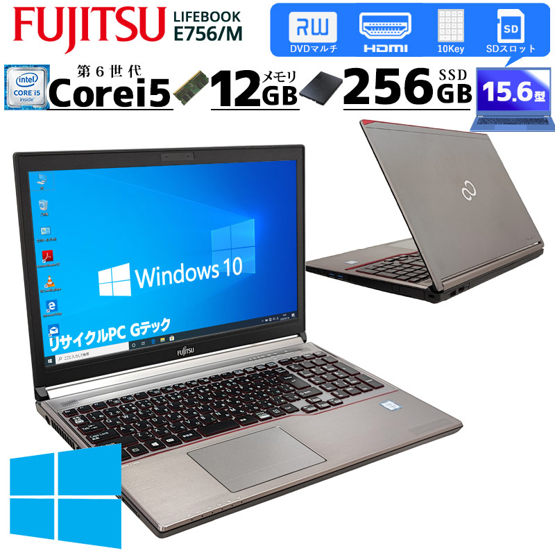 [新品SSD搭載] 中古ノートパソコン 富士通 LIFEBOOK E756/M Windows10Pro Core i5 630...