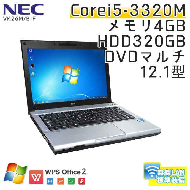 中古ノートパソコン NEC VersaPro VK26M/B-F Windows7 Corei5-2.6Ghz メモリ4GB HD...