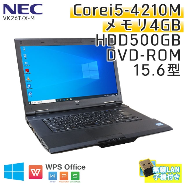 中古ノートパソコン NEC VersaPro VK26T/X-M Windows10Pro Corei5-2.6Ghz メモリ4G...