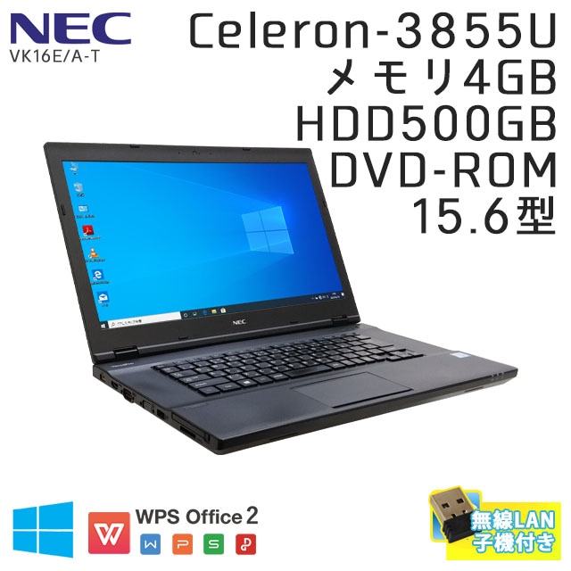 中古ノートパソコン NEC VersaPro VK16E/A-T Windows10Pro Celeron-1.6Ghz メモリ4...