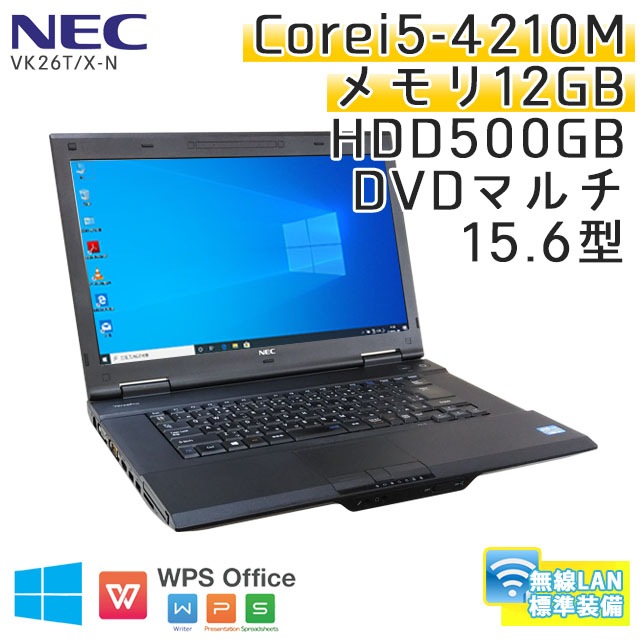 中古ノートパソコン NEC VersaPro VK26T/X-N Windows10Pro Corei5-2.6Ghz メモリ12...