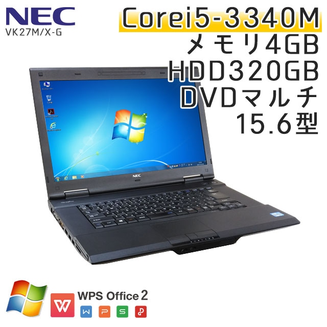 中古ノートパソコン NEC VersaPro VK27M/X-G Windows7 Corei5-2.7Ghz メモリ4GB HD...