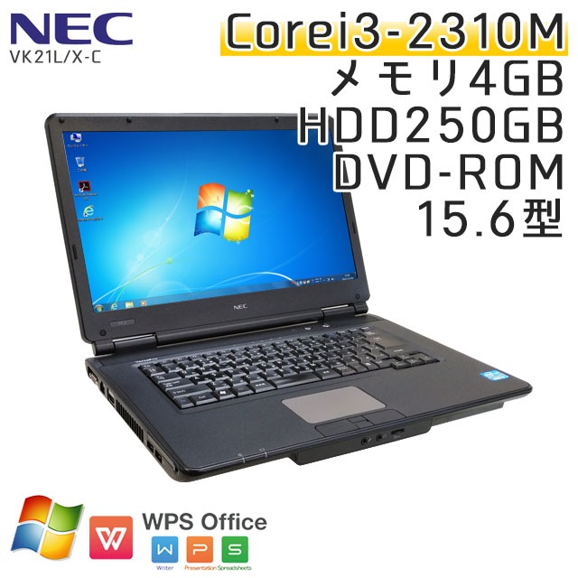 中古ノートパソコン NEC VersaPro VK22L/X-D Windows7 Corei3 2330M メモリ4GB HDD...