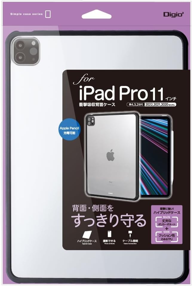 中古 ナカバヤシ 11インチiPad Pro 第4/3/2世代(2022/2021/2020年モデル)用 衝撃吸収背面ケース BK...