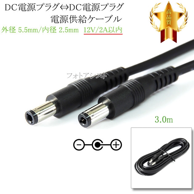 DC電源プラグ⇔DC電源プラグ 電源供給ケーブル 外径 5.5mm/内径 2.5mm 12V/2A以内 長さ3.0m ブラッ...