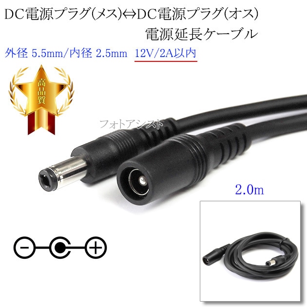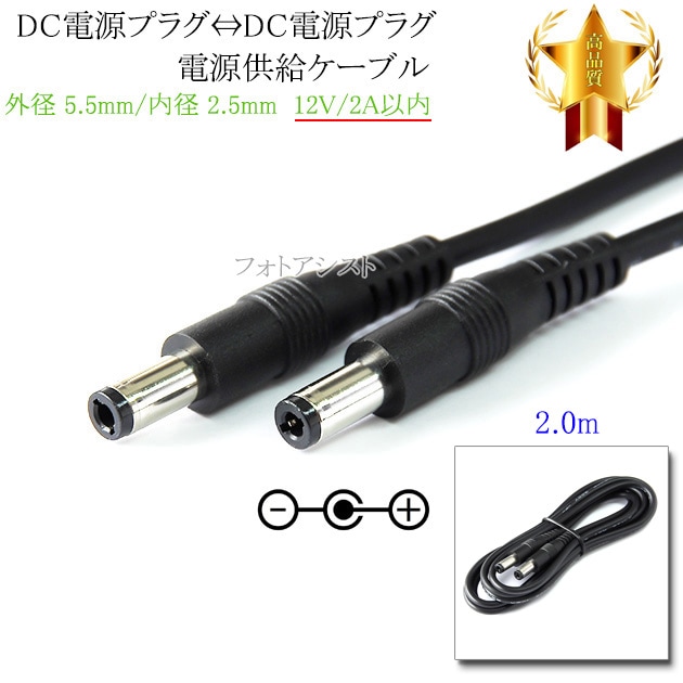 DC電源プラグ⇔DC電源プラグ 電源供給ケーブル 外径 5.5mm/内径 2.5mm 12V/2A以内 長さ2.0m ブラッ...
