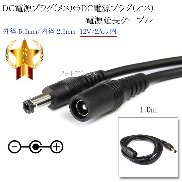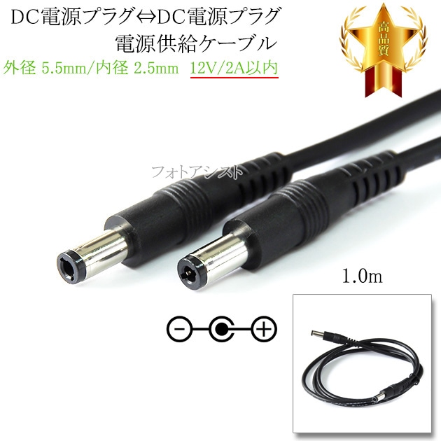 DC電源プラグ⇔DC電源プラグ 電源供給ケーブル 外径 5.5mm/内径 2.5mm 12V/2A以内 長さ1.0m ブラッ...