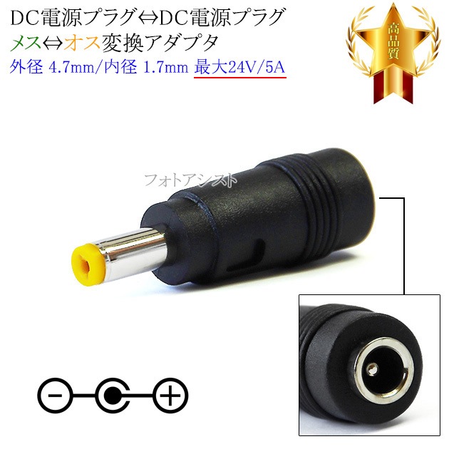 DC電源プラグ⇔DC電源プラグ 変換アダプタ メス⇔オス 外径 4.7mm/内径 1.7mm 最大24V/5A