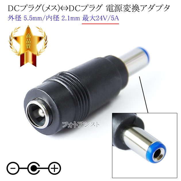 DC電源プラグ⇔DC電源プラグ 変換アダプタ メス⇔オス 外径 5.5mm/内径 2.1mm 最大24V/5A