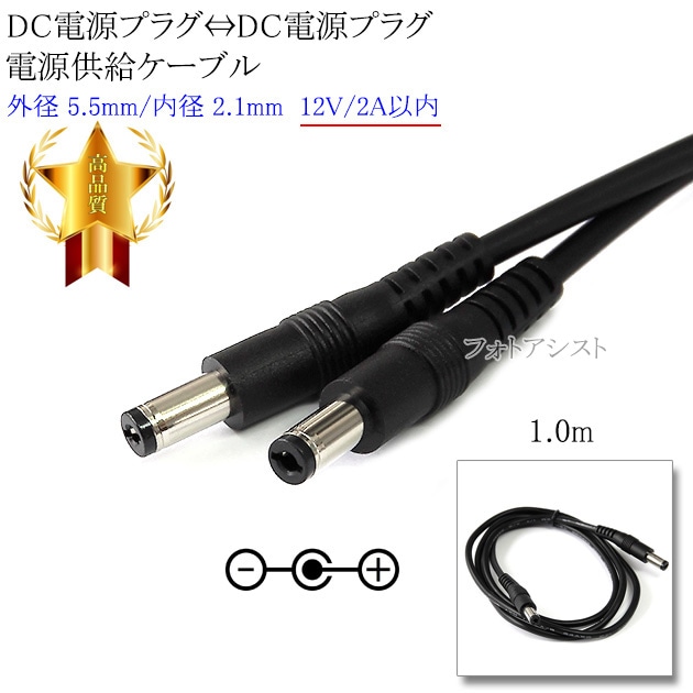 DC電源プラグ⇔DC電源プラグ 電源供給ケーブル 外径 5.5mm/内径 2.1mm 12V/2A以内 長さ1.0m ブラッ...