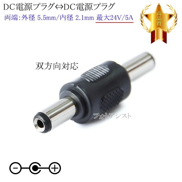 DC電源プラグ⇔DC電源プラグ アダプタ オス⇔オス 外径 5.5mm/内径 2.1mm 最大24V/5A