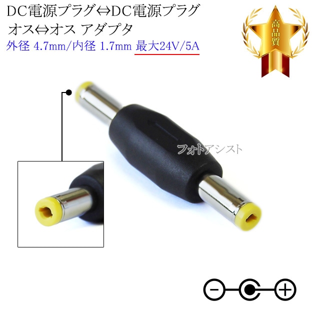 DC電源プラグ⇔DC電源プラグ アダプタ オス⇔オス 外径 4.7mm/内径 1.7mm 最大24V/5A
