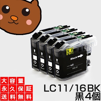 LC11BK ブラック/黒4個 【互換インクカートリッジ】 ブラザー LC11-BK/LC11BKインク 【送料無料】 【永久保証...