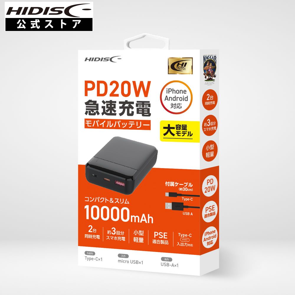 HIDISC PD20W, QC3.0対応 10000mAh モバイルバッテリー ブラック HD3-MBPD20W10TABK