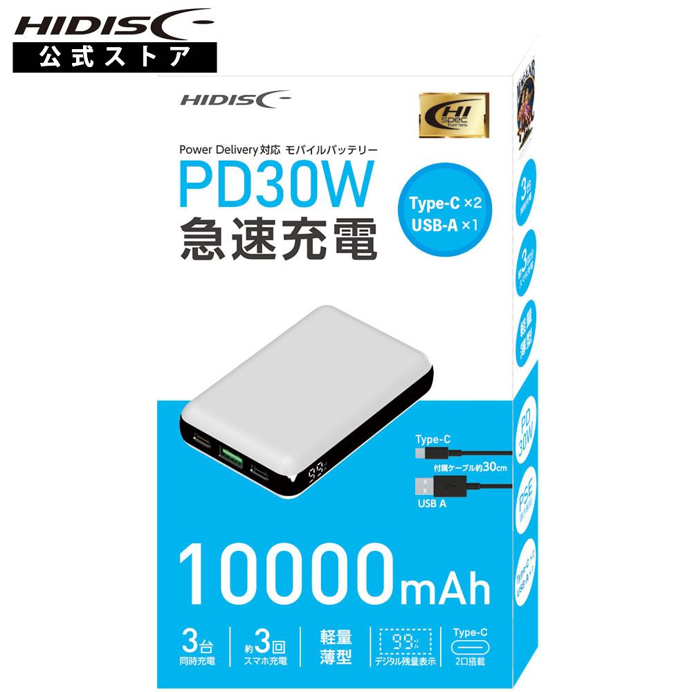 HIDISC PD30W急速充電 Type-Cx2, USB-Ax1 モバイルバッテリー 10000mAh HD-PD30W100...