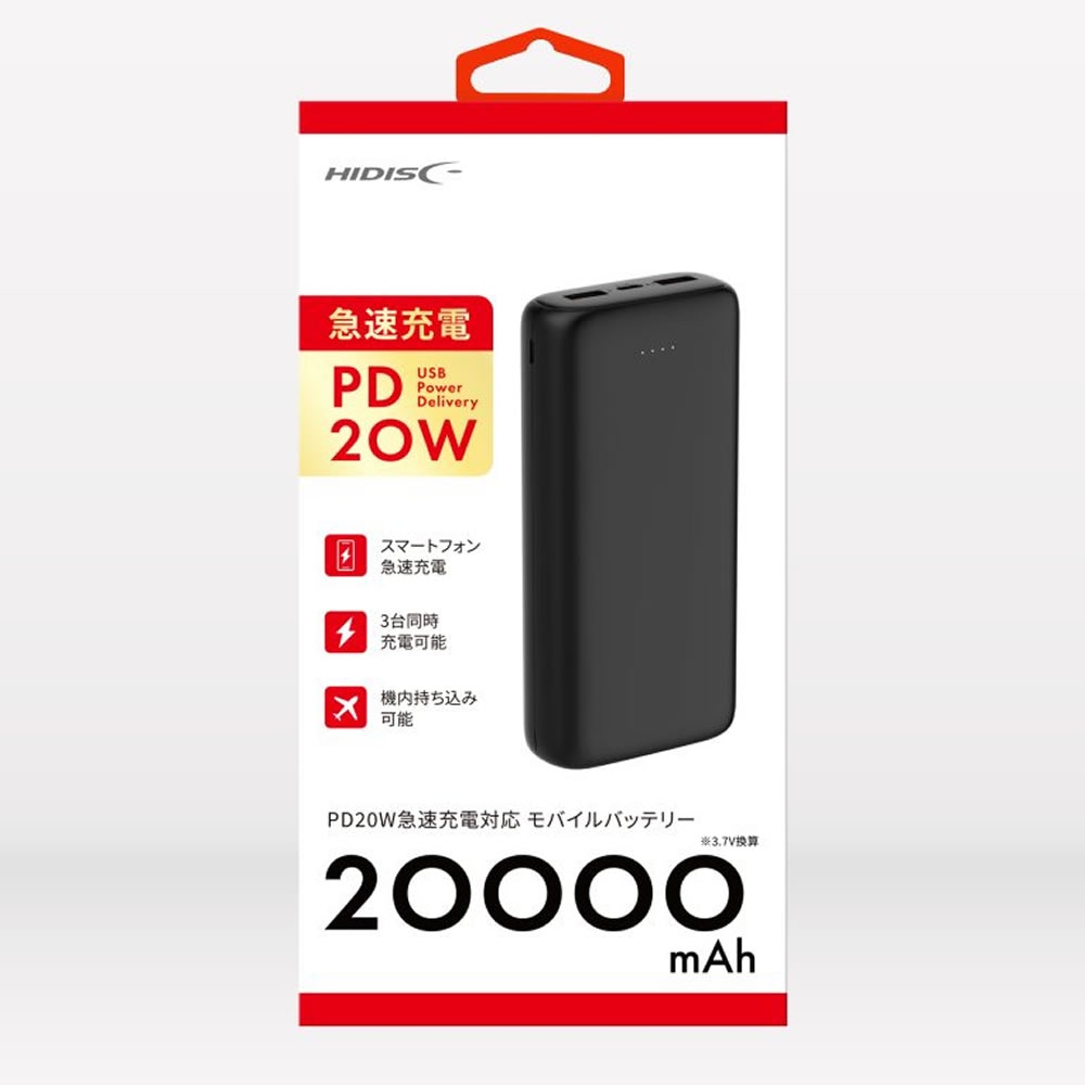 HIDISC PD20W急速充電対応 モバイルバッテリー 20000mAh ブラック 高出力・大容量モデル HD4-MBTC20K...