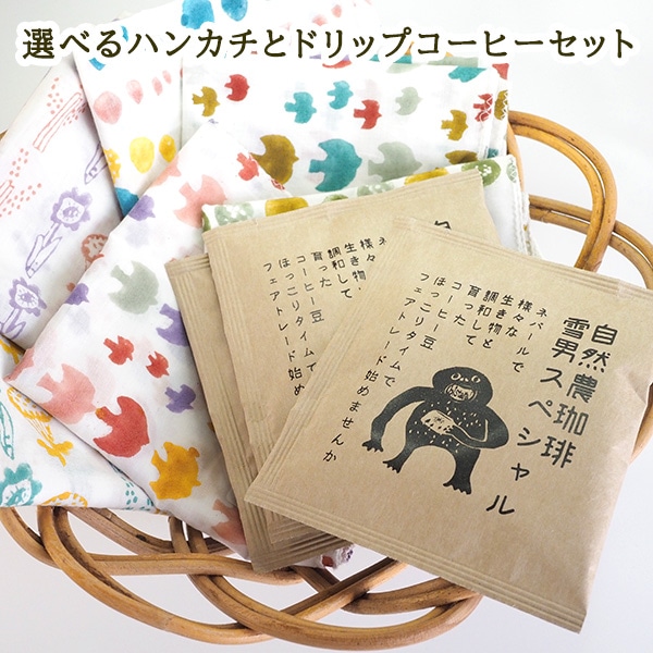 送料無料ギフトセット 選べるオリジナルオーガニックコットンハンカチとドリップコーヒーセット 雪男スペシャル ラッピング無料【※卸対...