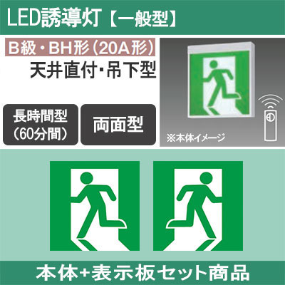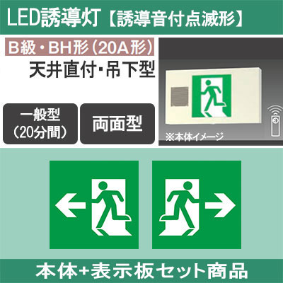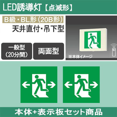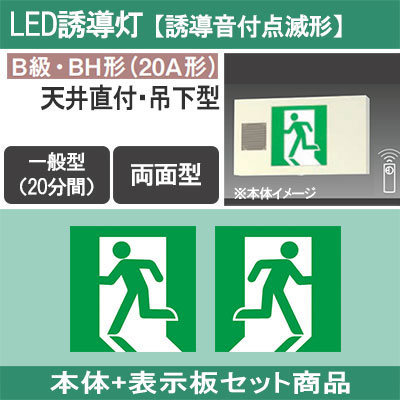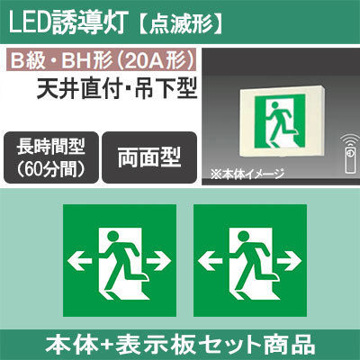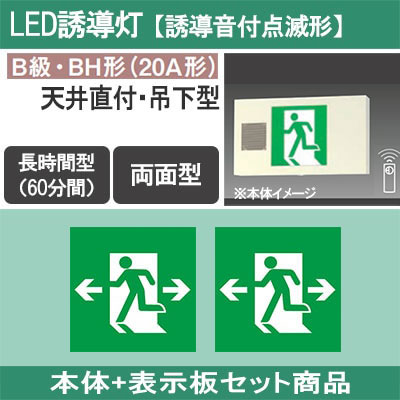 FA40326CLE1 + FK20318(×2) || LED誘導灯セット Panasonic 【本体:天井直付・吊下型/両面/...