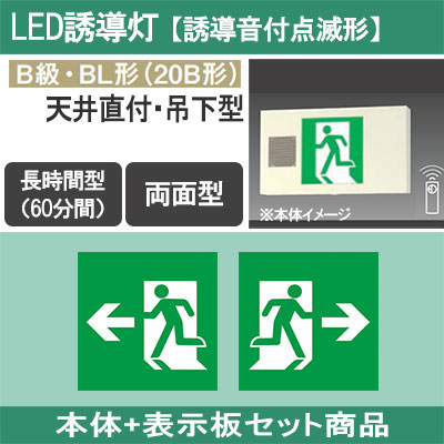 FA40347K LE1 + FK20308(×2) || LED誘導灯セットPanasonic【本体:誘導音付点滅形/壁・天井直...