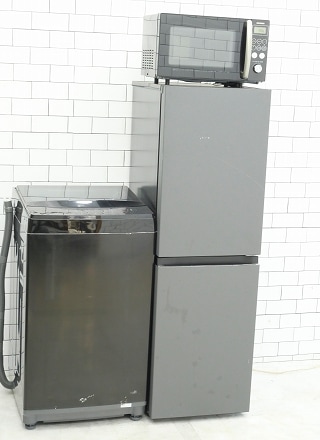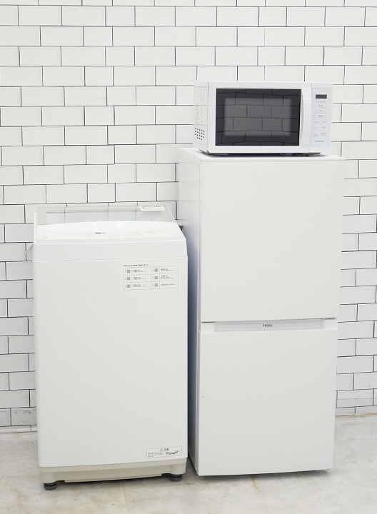 121L、6kg/22年、22年、24年/Haier、ニトリ、アイリスオーヤマ製/(冷蔵庫、洗濯機、電子レンジ)中古家電3点セット