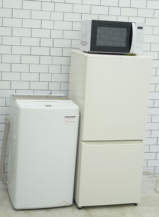 135L、5.5kg/23年、21年、24年/アクア、Haier、アイリスオーヤマ製/(冷蔵庫、洗濯機、電子レンジ)中古家電3点セ...