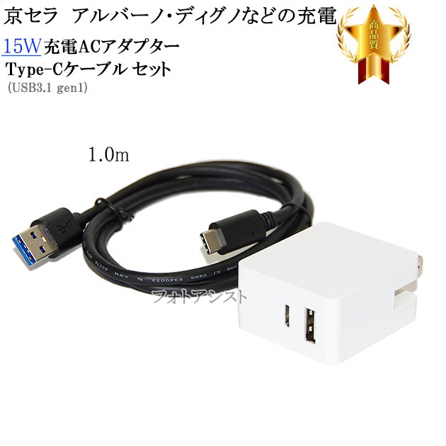 【互換品】 京セラ スマートフォン・タブレット 対応 15W ACアダプターとType-Cケーブル(A-C USB3.1 gen...