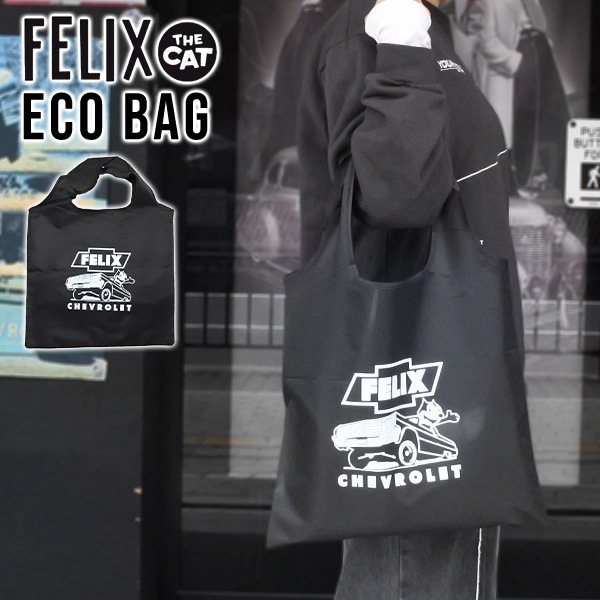 フィリックス シボレー エコバッグ ブラック ショッピングバッグ FELIX THE CAT CHEVROLET かばん バッグ ...