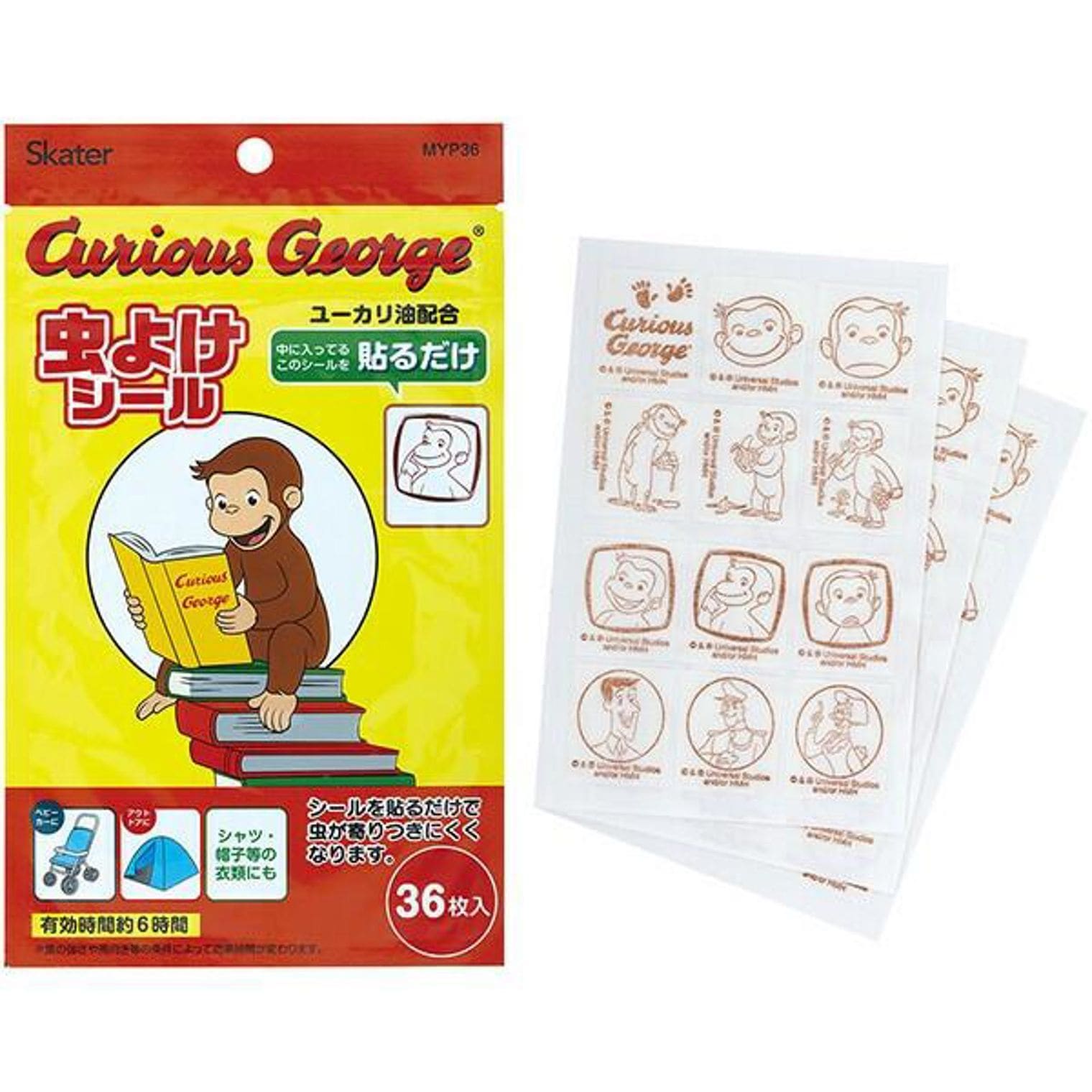おさるのジョージ 虫除けシール 36枚入 シールタイプ 子供 子ども キッズ キャラクター スケーター