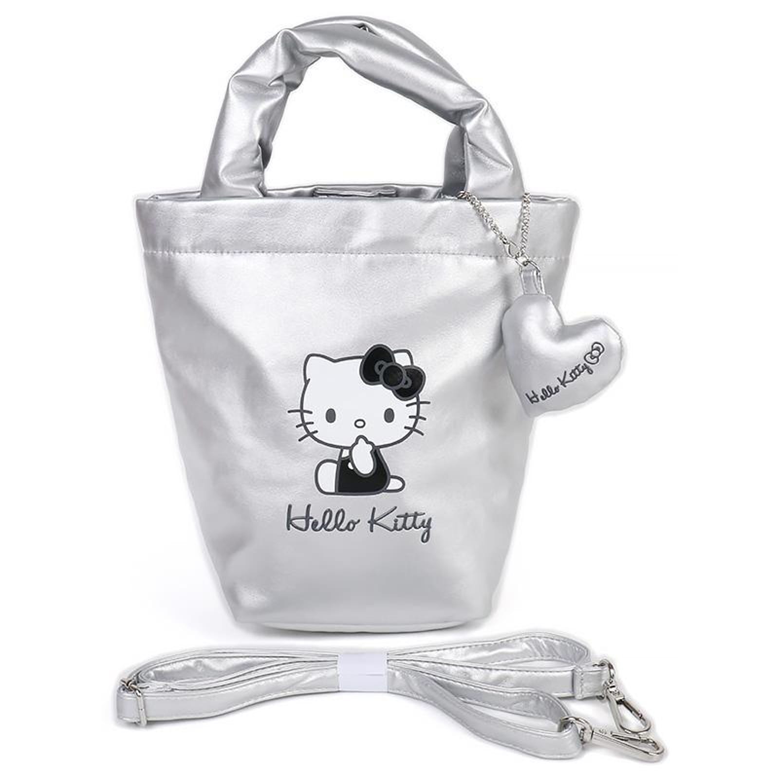 ハローキティ チャーム付き2WAYトートバッグ ショルダーバッグ シルバー ミニトート 手さげバッグ 大人 レディース 女子 おし...