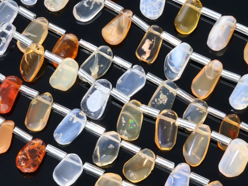 【宝石質】高品質インドビーズ★美しい発色とカット★天然石ビーズ/メキシカンオパール(蛋白石/欧泊/Opal)/ファンシーカット/約...
