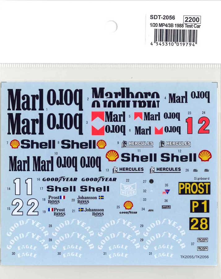 1/20 MP4/3B 1988 Test Car - Spare Decalfor TK2056STUDIO27 【Spare ...