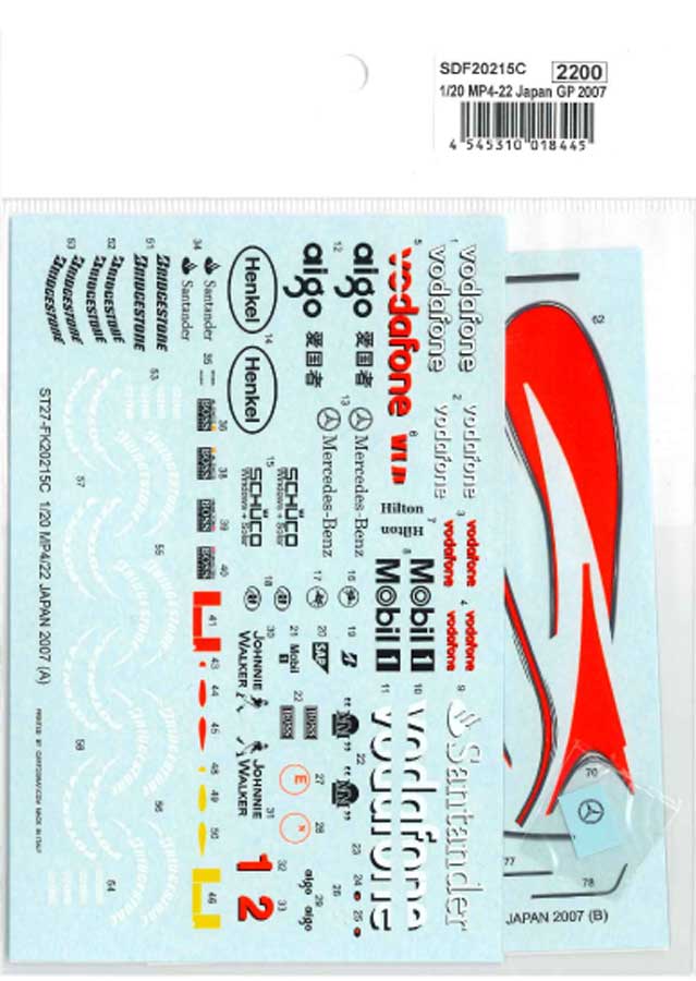 1/20 MP4-22 Japan GP 2007 - Spare Decalfor FK20215CSTUDIO27 【Spar...