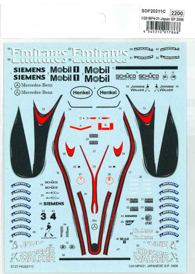 1/20 MP4-21 Japan GP 2006 - Spare Decalfor FK20211CSTUDIO27 【Spar...