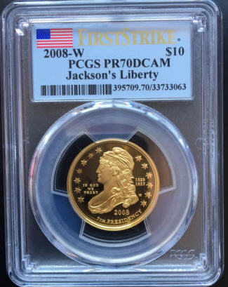 【動画あり】2008-W ジャクソンズ・リバティ10ドル金貨 $10 PCGS PR70DCAM ファーストストライク