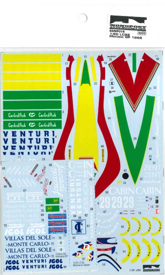 1/20 LC92 Monaco GP 1992 - Spare Decalfor MP018MONOPOST 【Spare De...